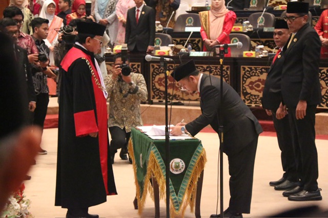 Pengucapan sumpah jabatan pimpinan DPRD Riau dipimpin langsung Ketua Pengadilan Tinggi Riau Dr. H. Siswadriono. SH. MH.
